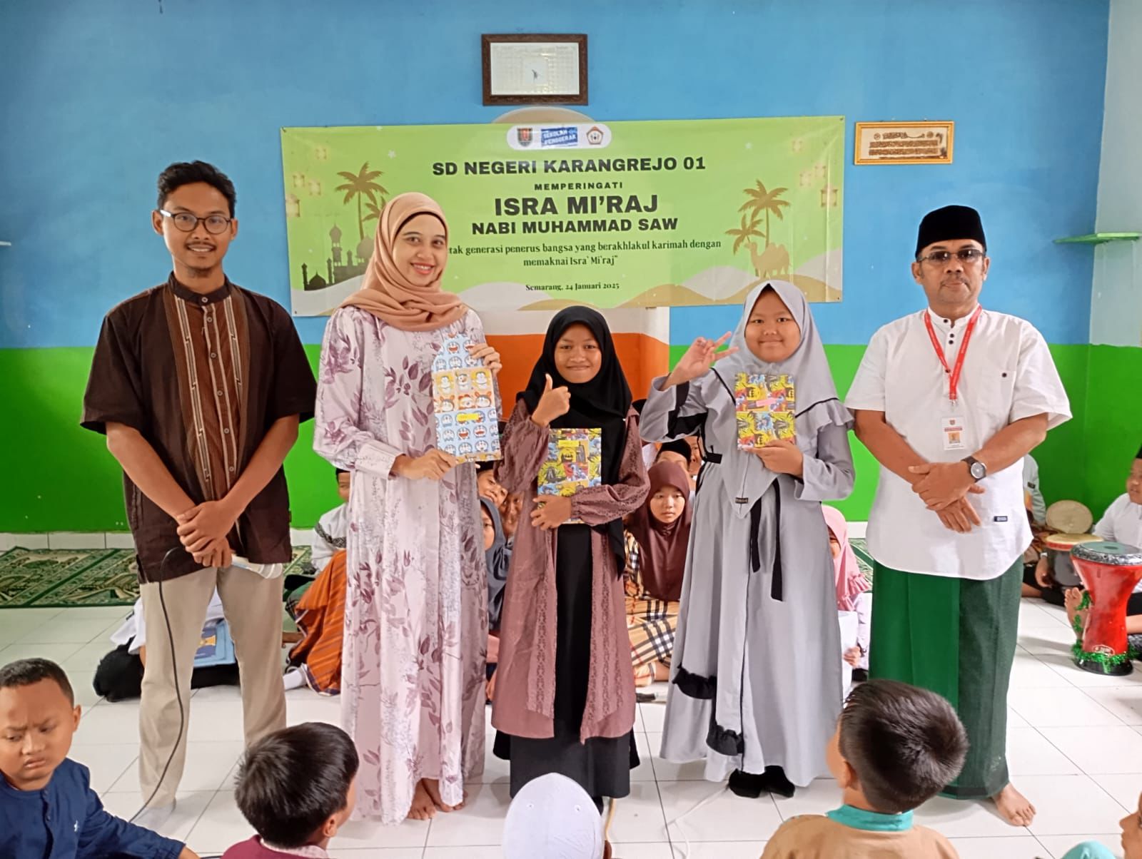 Dilaksanakan 24 Januari 2025 di Mushola SDN Karangrejo 01. Dari kegiatan Isra'Mi'raj diharapkan siswa dapat meneladani Nabi Muhammad SAW dan lebih giat beribadah utamanya dalam menjalankan sholat lima waktu.